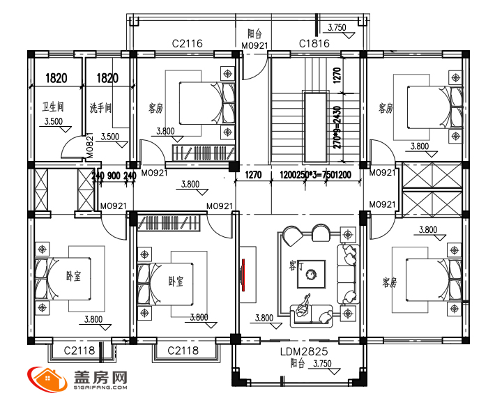 居住功能:3客厅、餐厅、厨房、13间卧室、4卫生间、阳台