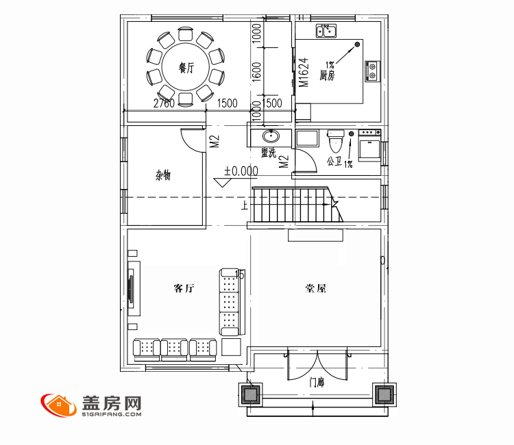 户型设计本着适合农村生活习惯设计,以实用舒适为主导。一层入户是堂屋,用来供奉神位。左侧与客厅互通,显得很是宽敞。中间设计了一个杂物间,也能当老人房,这里采用的是隔断墙,追求舒适度的话也可以不要杂物间。北面是餐厅厨房,餐厅面积很大,足以容纳10人以上同时进餐。