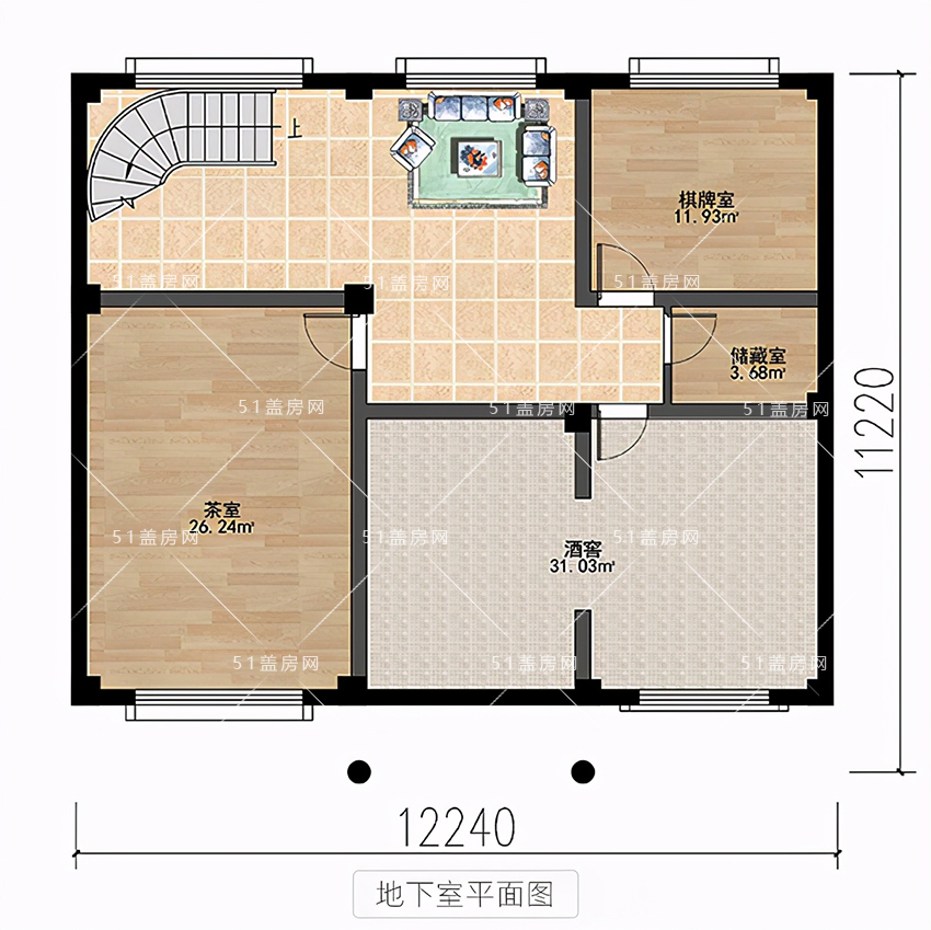 第二款:12×11米农村二层带地下室简欧风格小楼图