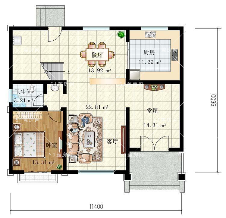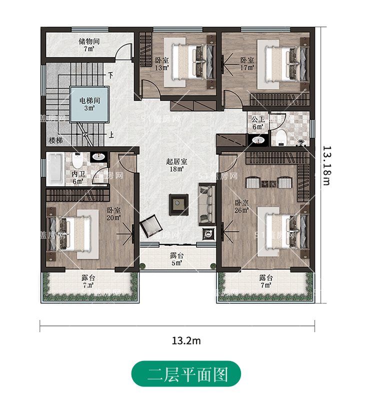 第五款:13×11米农村传统中式三层带露台住宅设计图